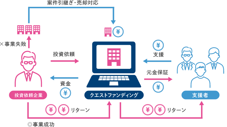 また、万が一事業が失敗した・倒産してしまった場合などは、クエストファンディングが